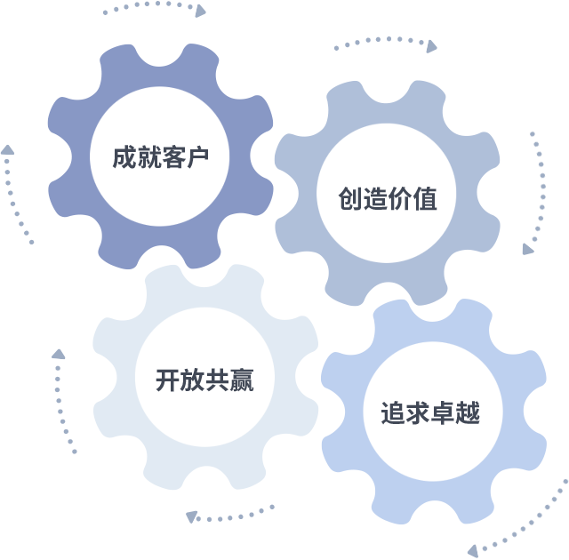 成就客户是一切决策的出发点,创造价值是衡量所有工作的标准,追求卓越是wm完美体育做事做人的态度,开放共赢是wm完美体育的格局也是最终的结果。价值观的齿轮环环相扣,推动着组织里的每个人不断向前。